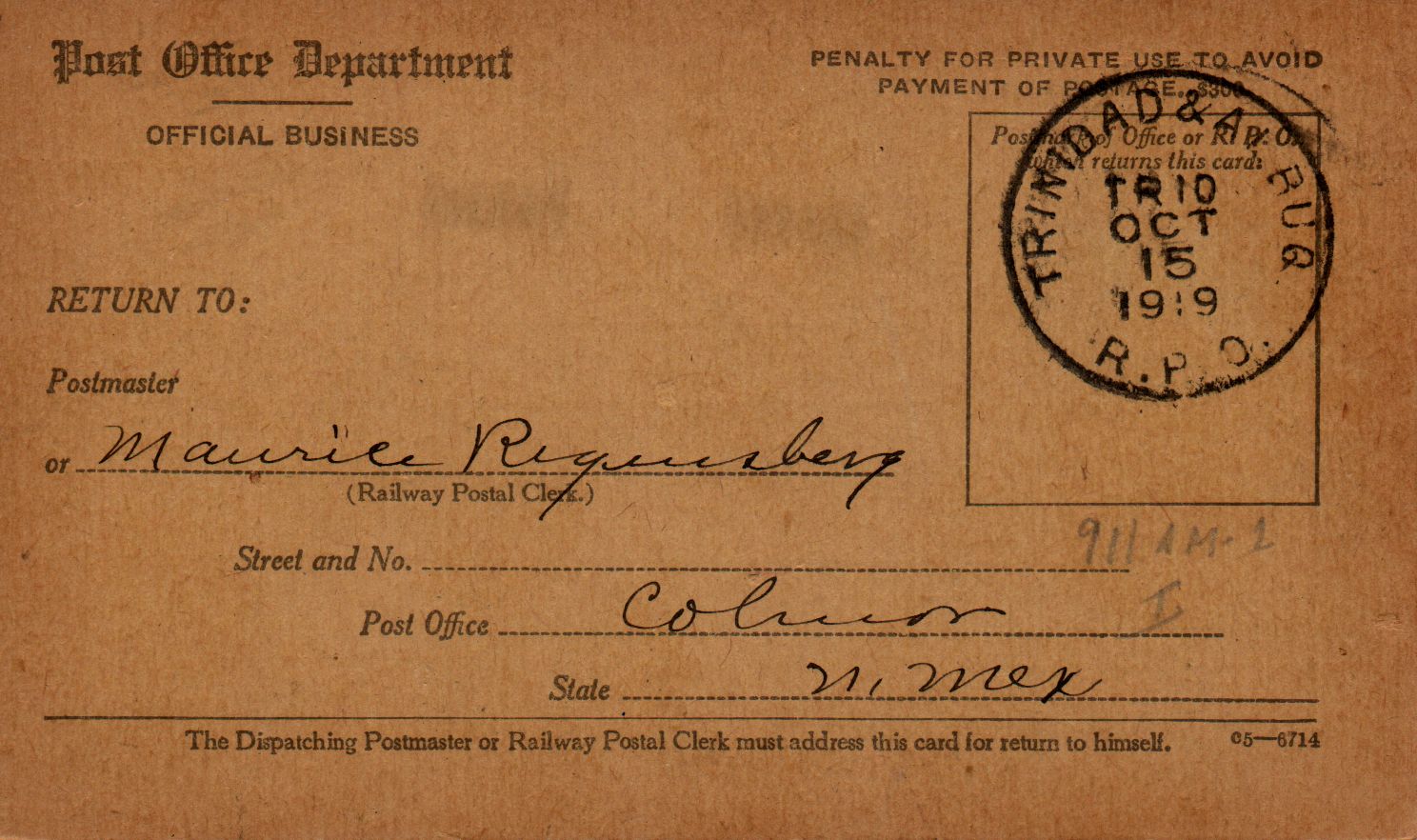Maurice Regensberg, Postmaster of the Colnor Post Office